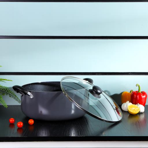 قدر طهي غير لاصق 30 سم مع غطاء زجاجي - وعاء طهي من الألومنيوم آمن للاستخدام في الحث الحراري مع طبقة متينة غير لاصقة من الجرانيت - قدر طهي مع غطاء زجاجي ومقابض مقاومة للحرارة