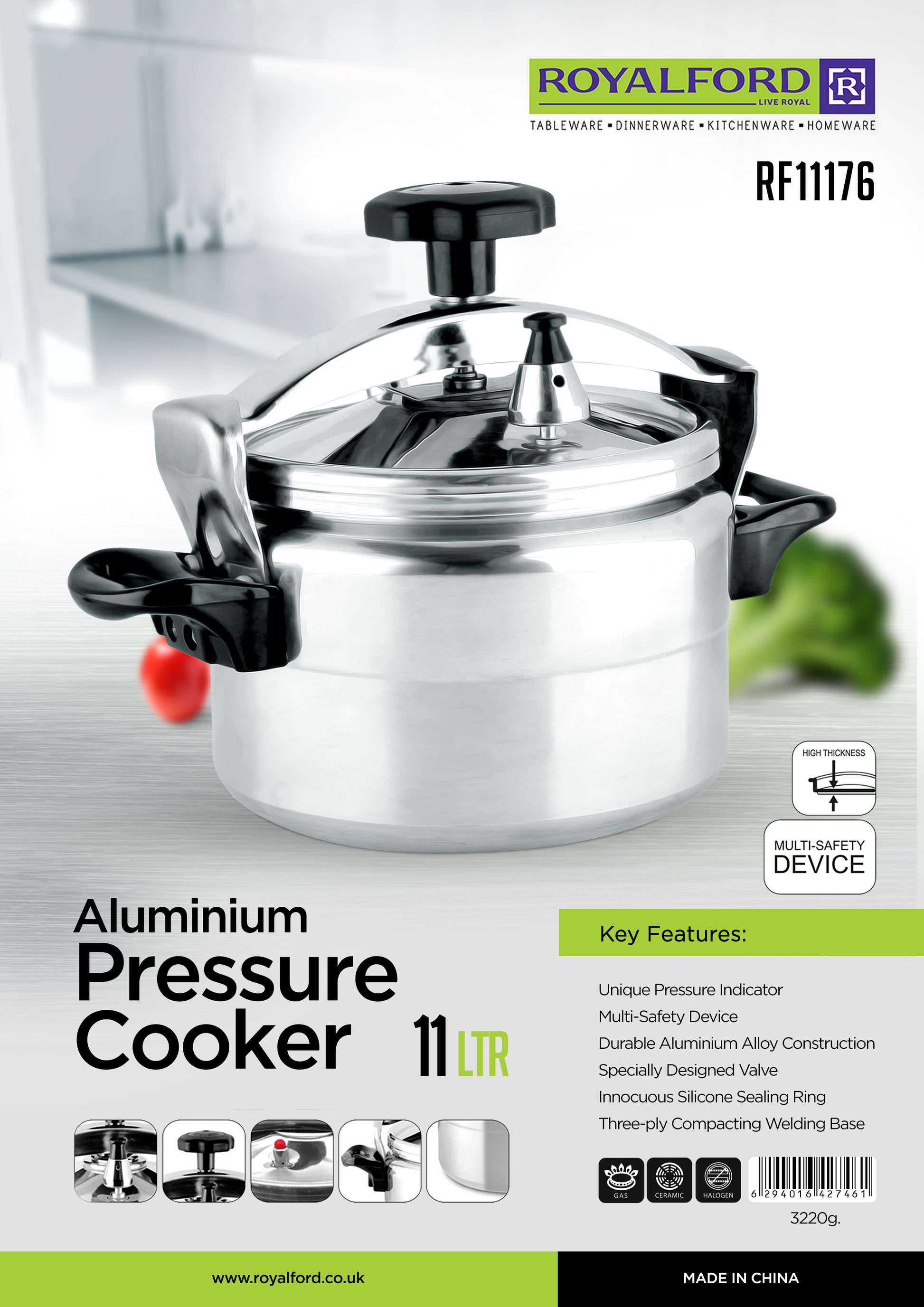 11.0 L Aluminum Pressure Cooker | High Thickness | Equipped with Multi-Safety Device and Unique Pressure Indicator| Durable Aluminum Alloy Construction with Firm Handles| Compatible with Gas, Ceramic and Halogen Cooktops| Silver