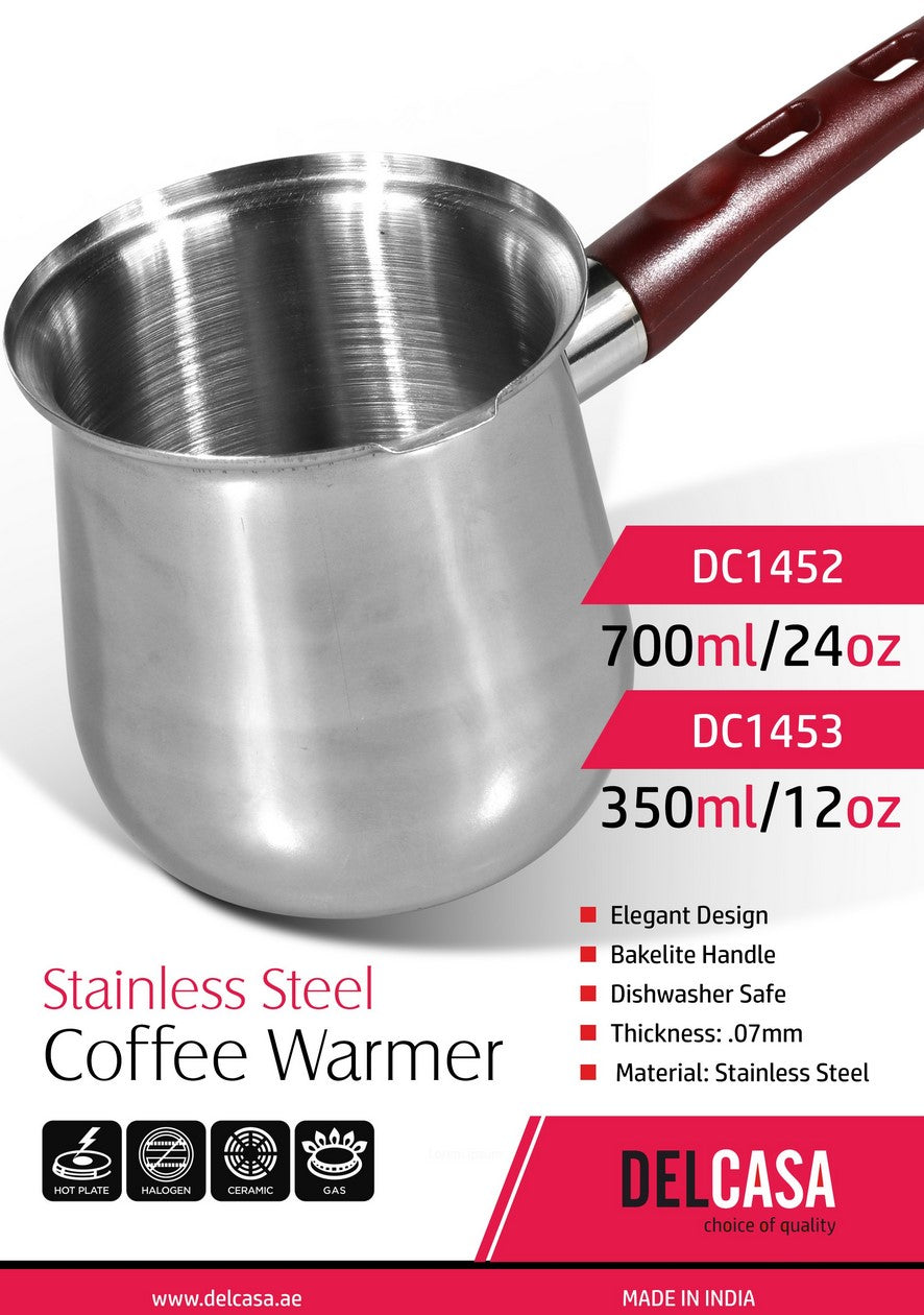سخان قهوة من الفولاذ المقاوم للصدأ - وعاء قهوة على الموقد سعة 700 مل/24 أونصة - وعاء قهوة تركي، شاي، حليب - تصميم بسيط وأنيق من الفولاذ المقاوم للصدأ - مقبض قوي ومريح مع فوهة صب مثالية