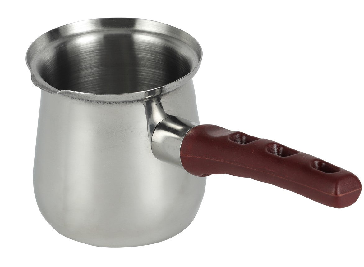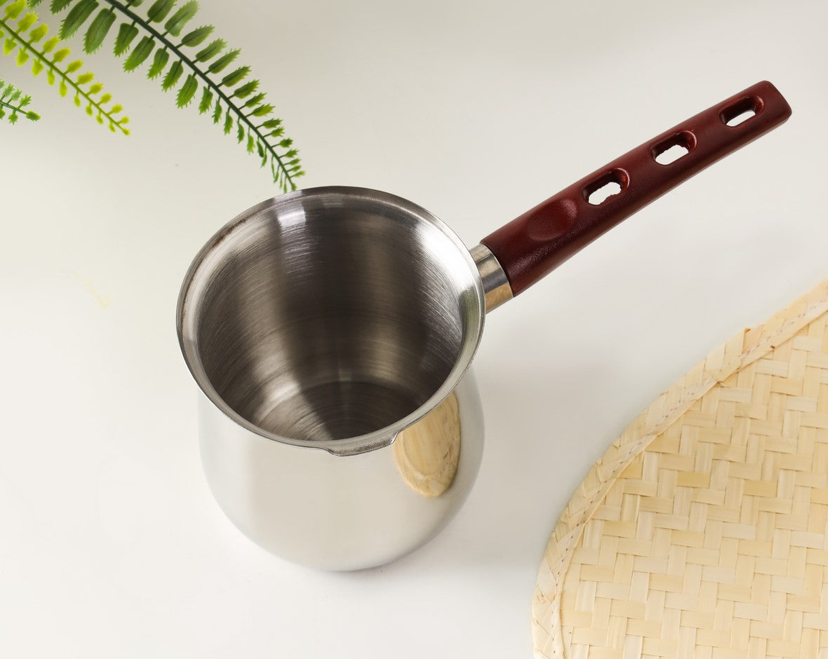 سخان قهوة من الفولاذ المقاوم للصدأ - وعاء قهوة على الموقد سعة 350 مل/12 أونصة - وعاء قهوة تركي، شاي، حليب - تصميم بسيط وأنيق من الفولاذ المقاوم للصدأ - مقبض قوي ومريح مع فوهة صب مثالية