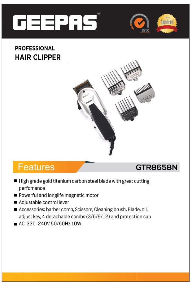 ماكينة قص الشعر الاحترافية | محرك مغناطيسي | قوة مغناطيسية قوية، مع 4 ملحقات مشط قابلة للفصل | مثالية للاستخدام المنزلي والاحترافي