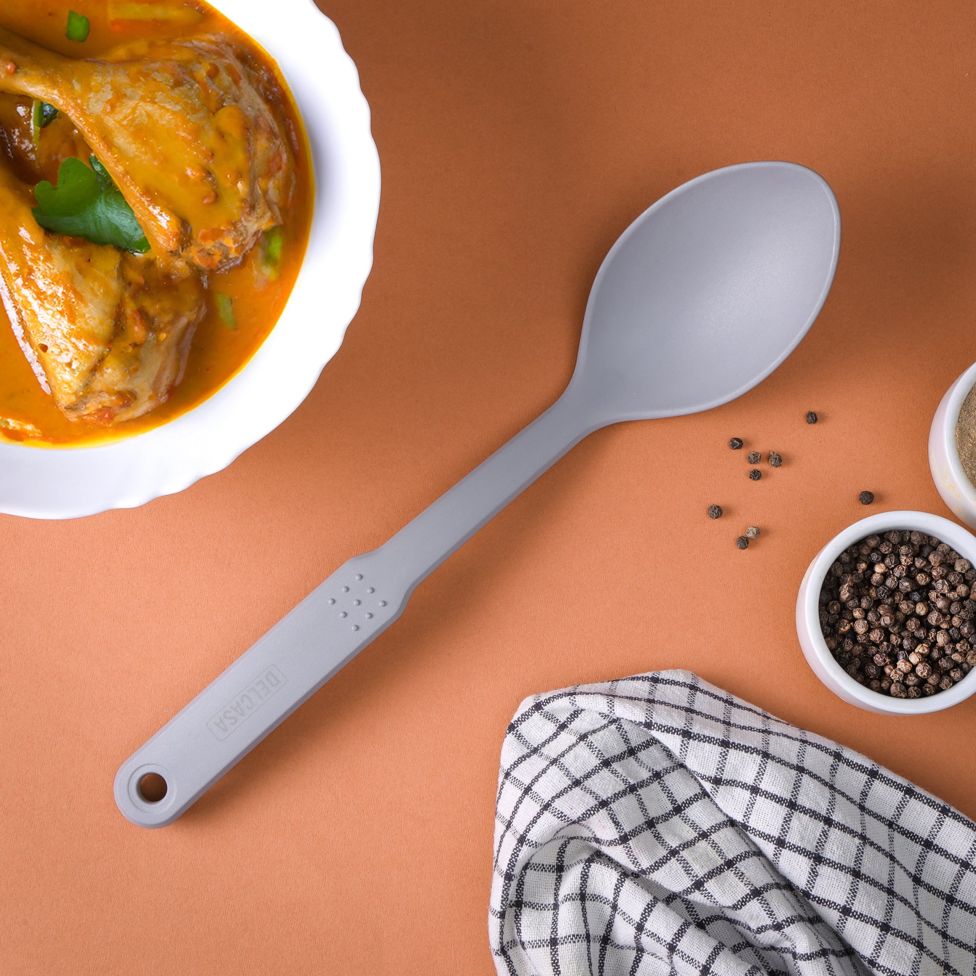 PBT Plastic Serving Spoon- Ideal for Cooking and Serve Food, Curry, Rice/ Kitchen Utensils for Nonstick Pans and Cookware/ Sturdy, Lightweight and Heat Resistant/ Black