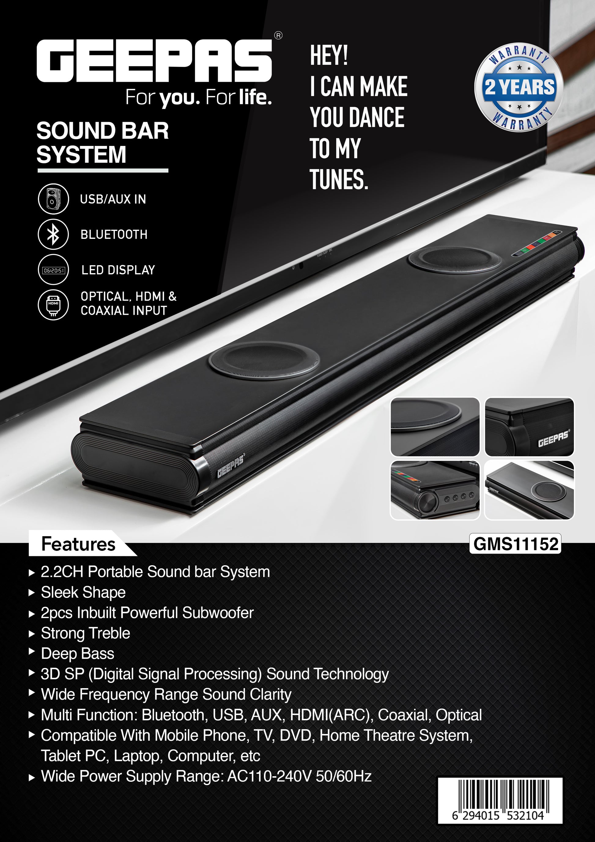 نظام صوت محمول، مع معالج إشارة رقمية ثلاثي الأبعاد، ومنفذ USB/AUX/بلوتوث/HDMI | نظام صوت محمول 2.2 قناة، يُوصل بالتلفزيون، والهاتف المحمول، والكمبيوتر المحمول، وغيرها