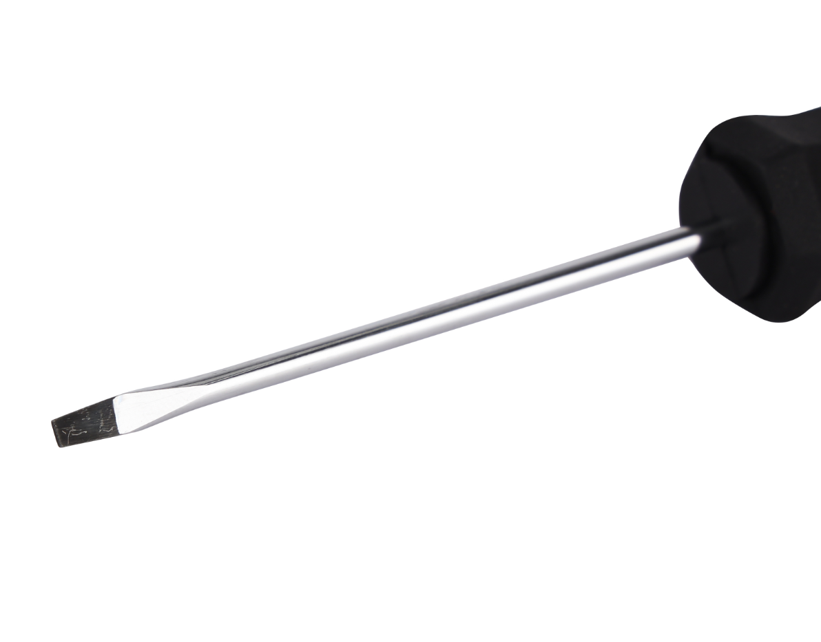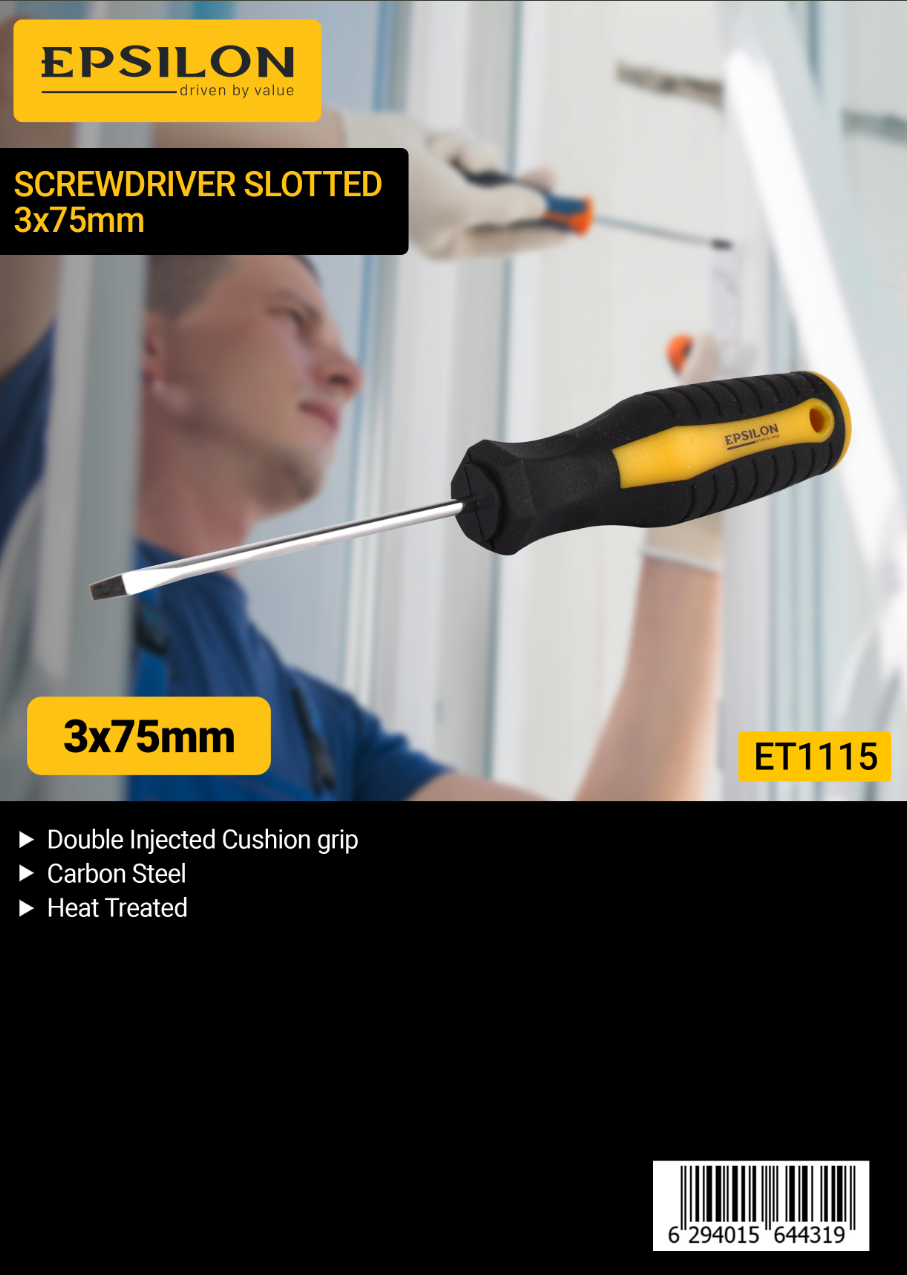 مفك براغي مشقوق - ٣ × ٧٥ مم، بمقبض مبطن مزدوج الحقن، مصنوع من فولاذ كربوني عالي الجودة ومعالج حراريًا | مثالي لفك وربط البراغي المشقوقة | أسود وأصفر