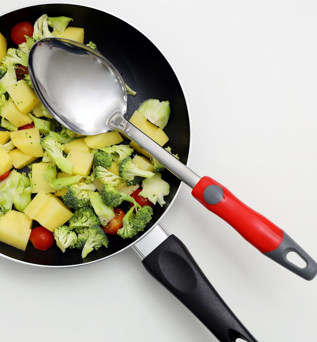 ملعقة تقديم من الفولاذ المقاوم للصدأ، بمقبض من البولي بروبيلين، بتصميم أنيق | أدوات مائدة/أواني فخارية | مثالية للتقديم، والشوربات، والحلويات، وغيرها