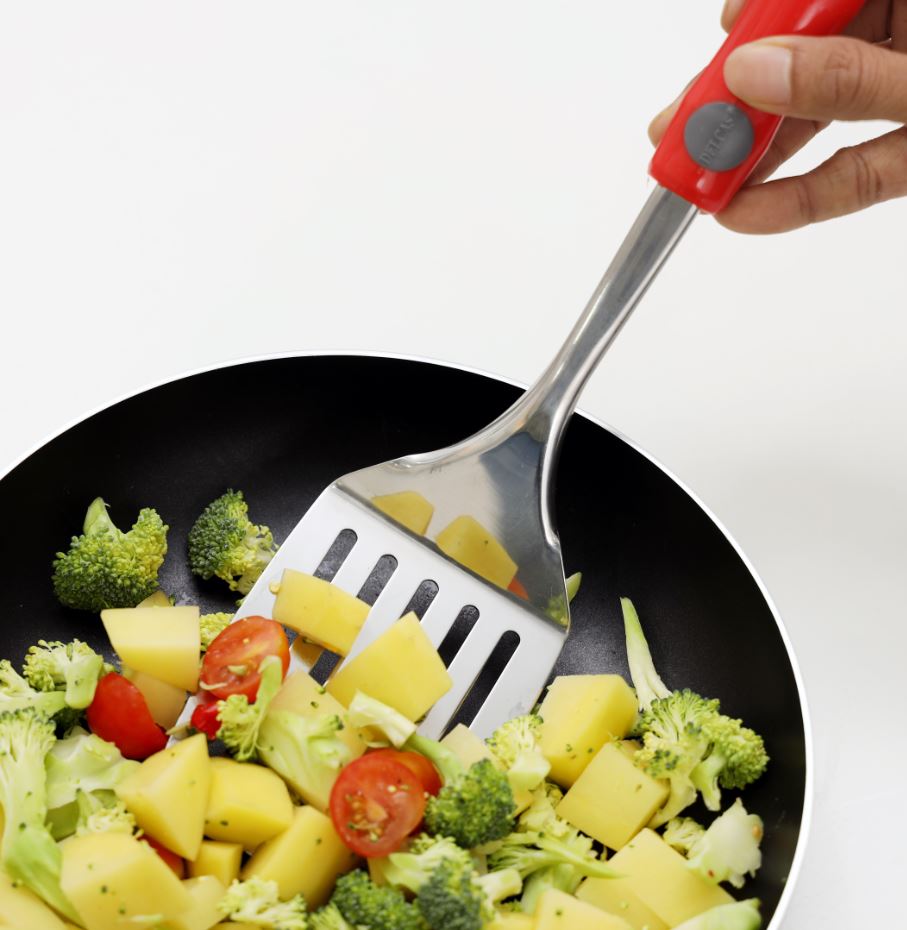ملعقة تقليب مشقوقة من الفولاذ المقاوم للصدأ بمقبض من البولي بروبيلين، ملعقة تقليب مشقوقة بحلقة تعليق للطهي والتقليب وقلي الأسماك والتونة وشرائح اللحم والبيض والفطائر