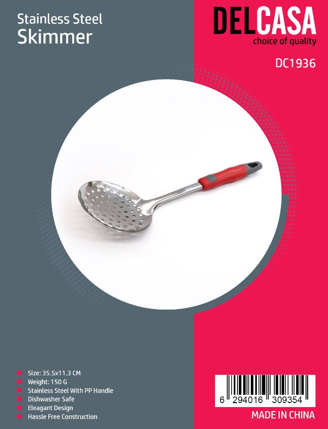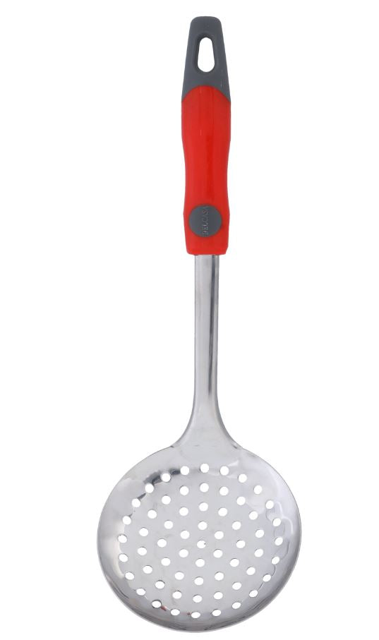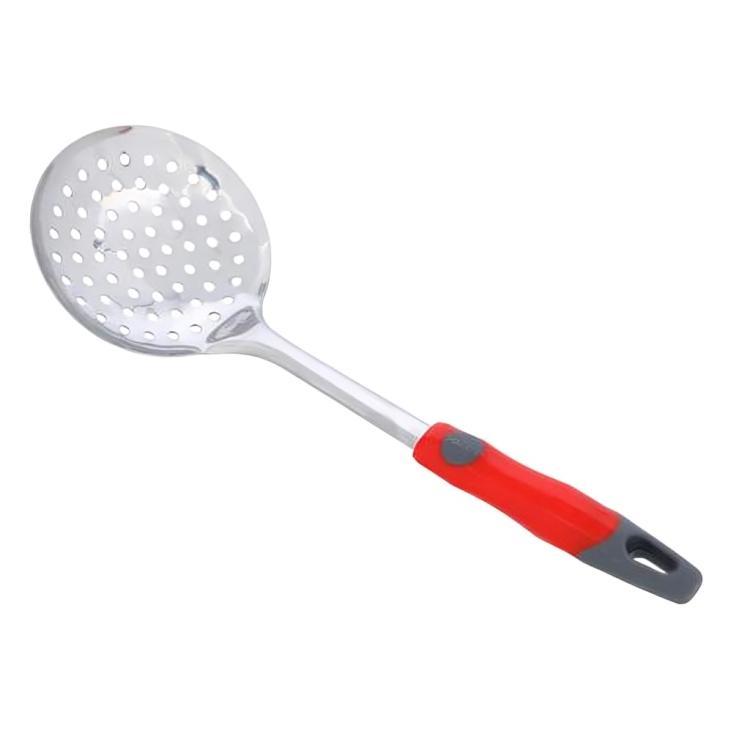 ملعقة مصفاة من الفولاذ المقاوم للصدأ بمقبض من البولي بروبيلين، وفتحة تعليق مدمجة ومقبض مريح | ملعقة مصفاة متينة مناسبة للطعام للتصفية والقلي