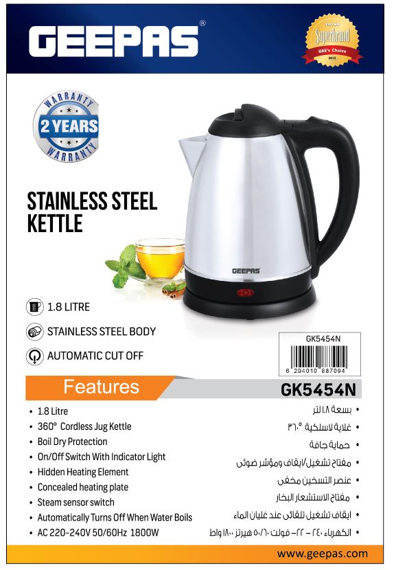 Çaydanka Elektrîkî ya 1.8L 1800W