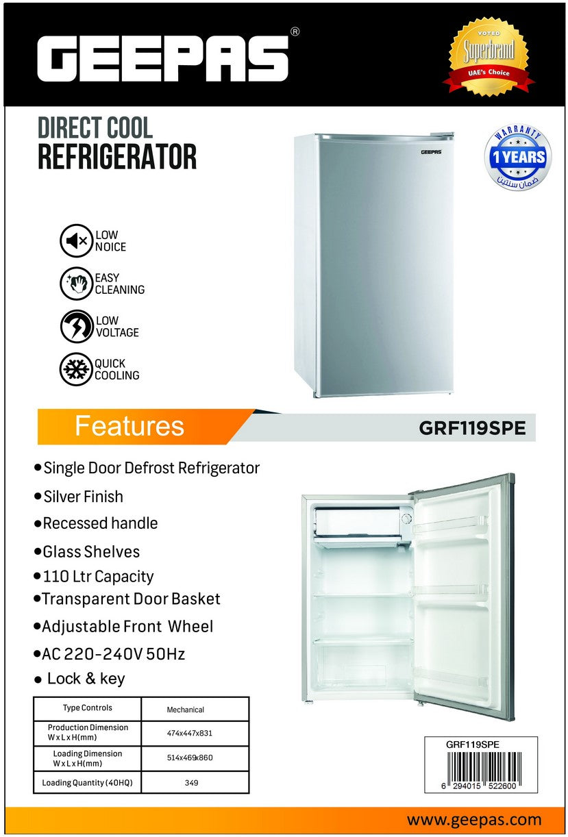 Sarincokê Yek Derî ya 110L Direct Cool - Sarincokê Du Derî ya Serbixwe û Berdewam, Sarbûna Bilez & Tezehiya Demdirêj, Dengê Kêm, Xerckirina Enerjiyê ya Kêm, Sarincokê Bihelîne | Garantiya 1 Salê