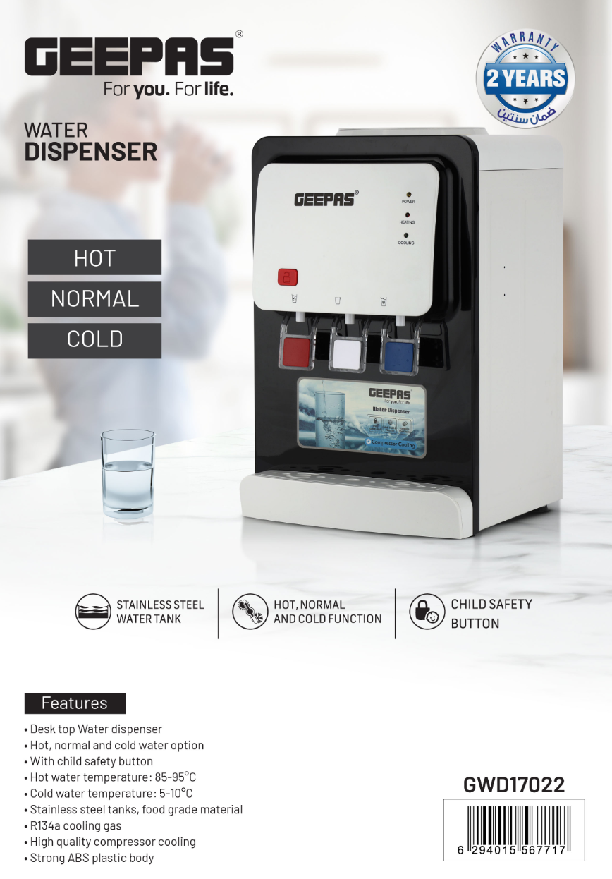 Dabeşkera Ava Maseyê - Asayî, Fonksiyona Germ û Sar, û 3 Qirik, Tanka Pola Zengarnegir / Bi Bişkoka Ewlehiya Zarokan, Sarkirina Kompresorê, Ji bo Mal, Dibistan, Apartmanan, Ofîsê, hwd. Îdeal e. / Spî û reş, Garantiya 2 Salan