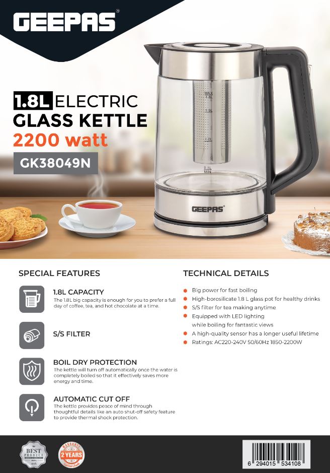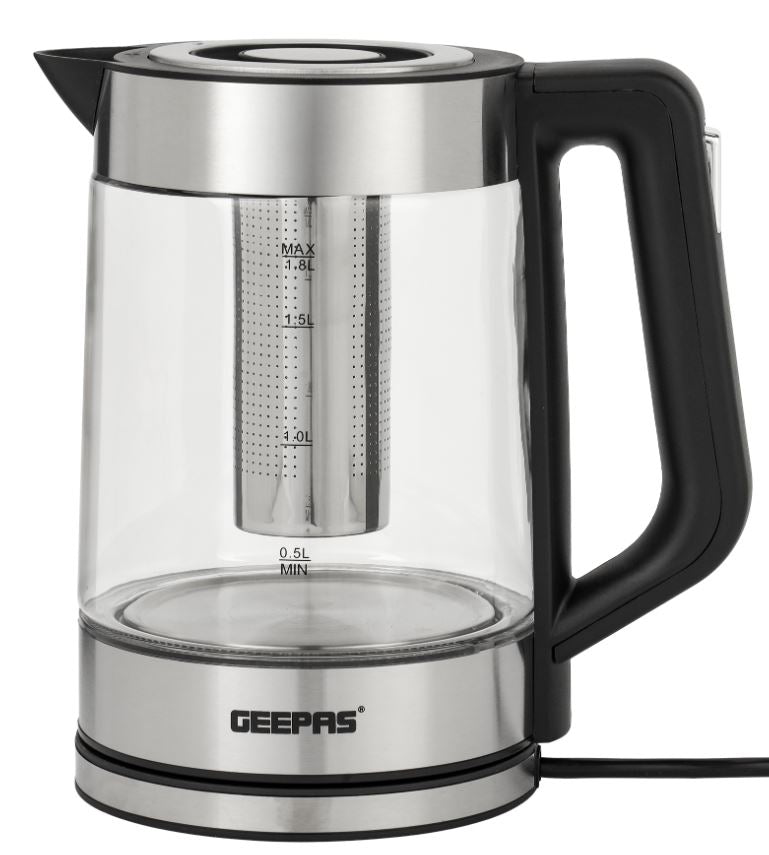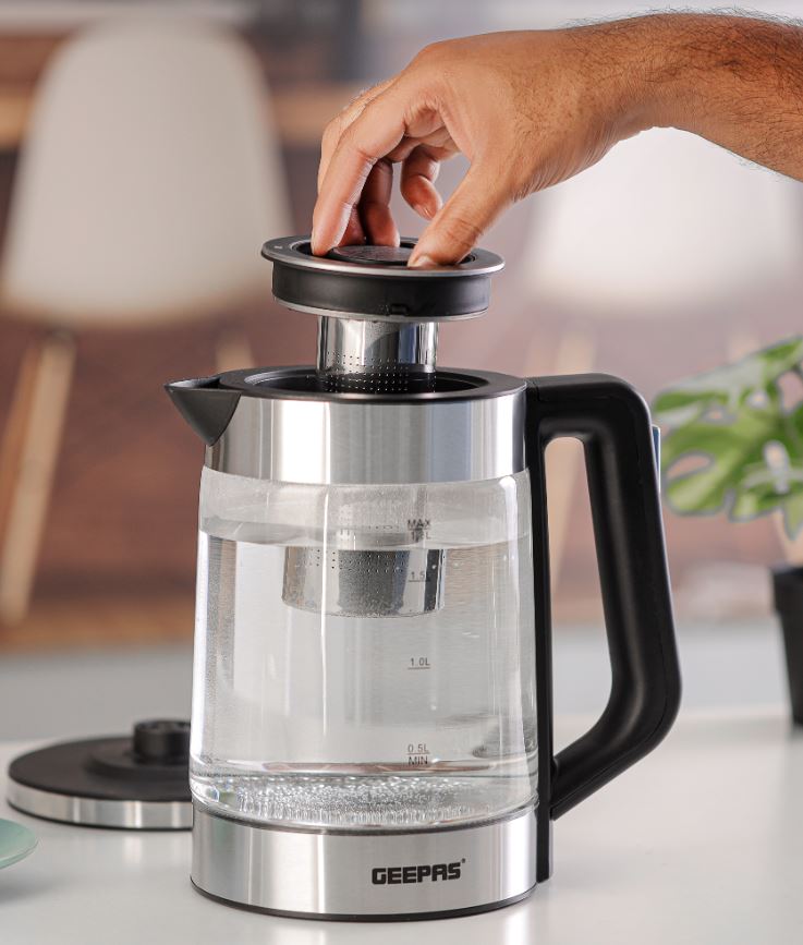 Çaydankê ji cama duqatî, kapasîteya 1.7 lître, GK38049 | Girtina Otomatîk û Parastina ji Kelandina Hişk | Bêkabloyî bi Ronahiya LED ya Şîn | Bingeha Bêkabloyî ya 360 Pile