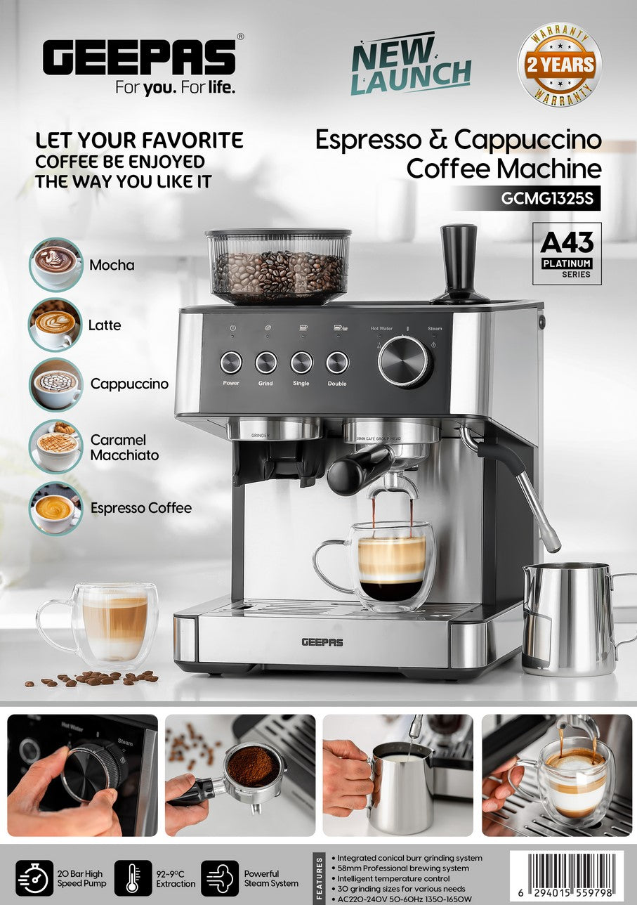 Makîneya Qehweyê ya Espresso û Cappuccino - Bi Pompeya Zexta Bilind a 20 Bar, Sîstema Buhara Bi Hêz, Sîstema Hûrkirina Konîk a Burr, Çêkirina Biraştinê ya Profesyonel / Cappuccino, Latte, Espresso, Macchiato, Mocha / Reş û Zîv, 2 Sal Garantî ve hatî çêkirin.