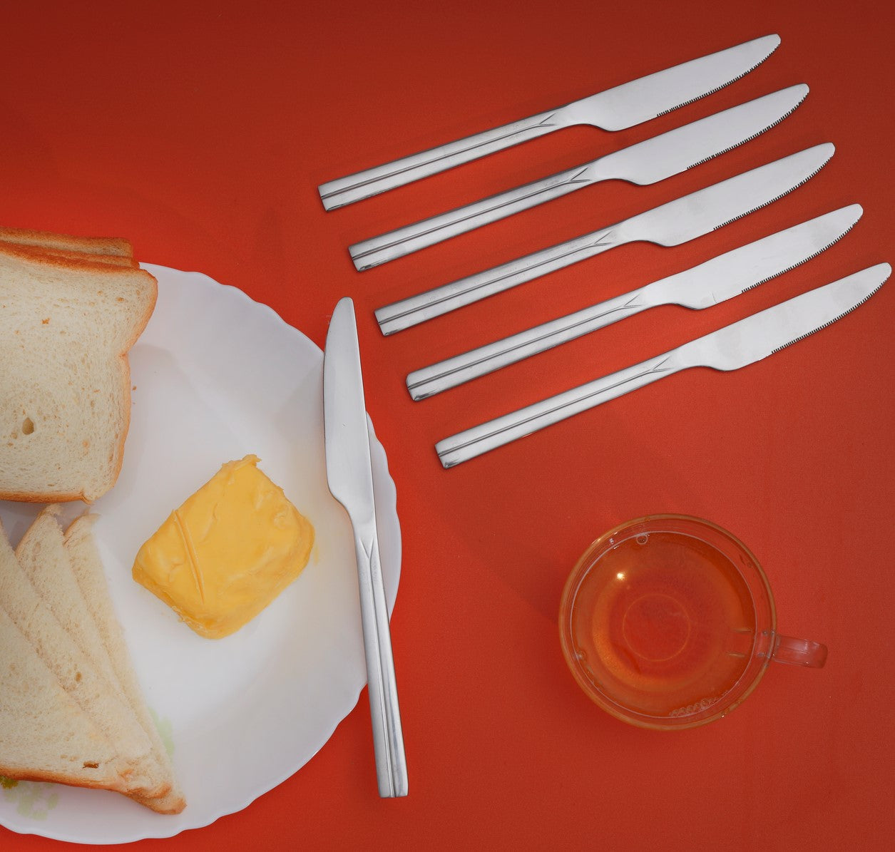 6Pc SS Table Knife - Ergonomic Handle Sharp Serrated Blades | Stainless Steel | Ideal for Dining & Kitchen Use