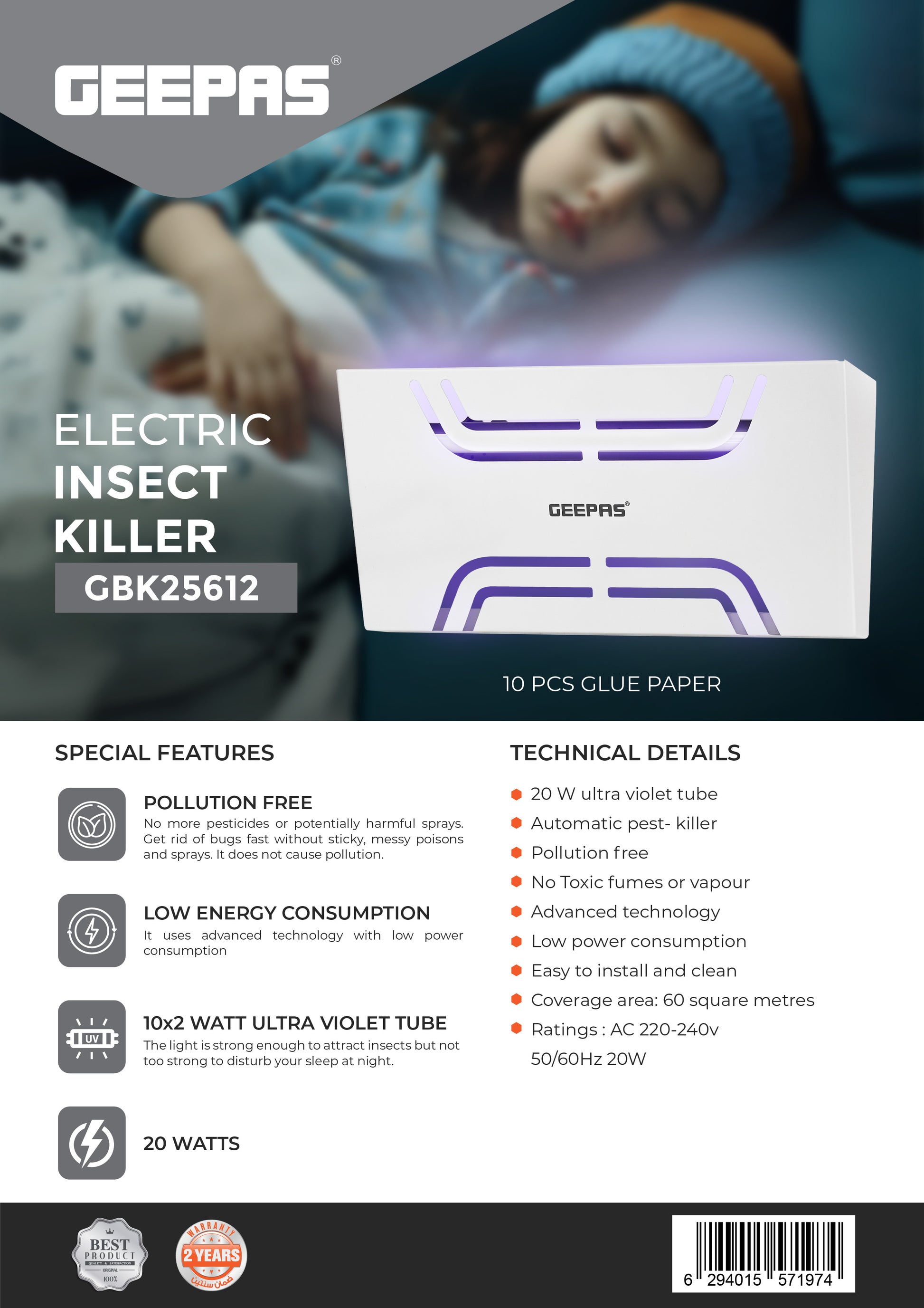 20W Electric Insect Killer- Automatic Pest Killing Machine, 2x10 W/ No Poisonous Vapor, No-Smell and No-Pollution/ Advanced Technology with Low Power Consumption/ Suitable for Home, Office, Restaurants, Hospitals, etc./ White, 2 Years Warranty